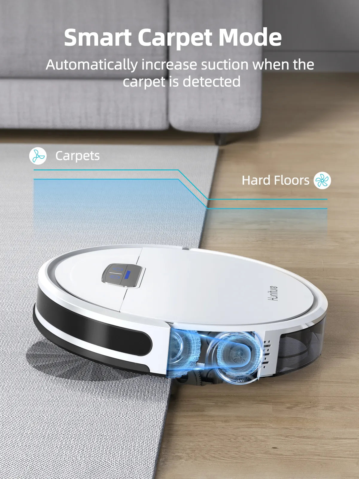 【Intelligenter Teppichmodus und starke Saugleistung von 4000 Pa】Diese Kombination aus Staubsauger und Wischroboter reguliert automatisch die Saugleistung. Kein Problem wenn er auf einen langhaarigen Teppich triff, saugt er Tierhaare oder andere in Teppich versteckte Partikel auf. Er variiert selbstständig zwischen 600 Pa und 4000 Pa. Machen Sie sich keine sorgen mehr um die Reinigung, der G20 erledigt das ab sofort für Sie.